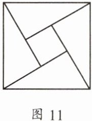 4. 2002年8月在北京召开的国际数学家大会会徽取材于我国古代数学家赵爽的《勾股圆方图》,它是由四个全等的直角三角形与中间的小正方形拼成的大正方形(如图11所示). 如果大正方形的面积是13,小正方形的面积是1,直角三角形中较短的直角边为a,较长的直角边为b,那么$(a+b)^2$的值为(