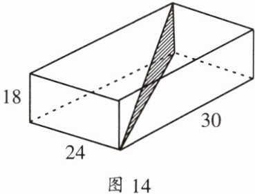 3. 如图14,一个长方体盒子的盒内长、宽、高分别是30cm、24cm和18cm,盒内可放的棍子最长有多长?(提示:图中的阴影三角形是直角三角形)