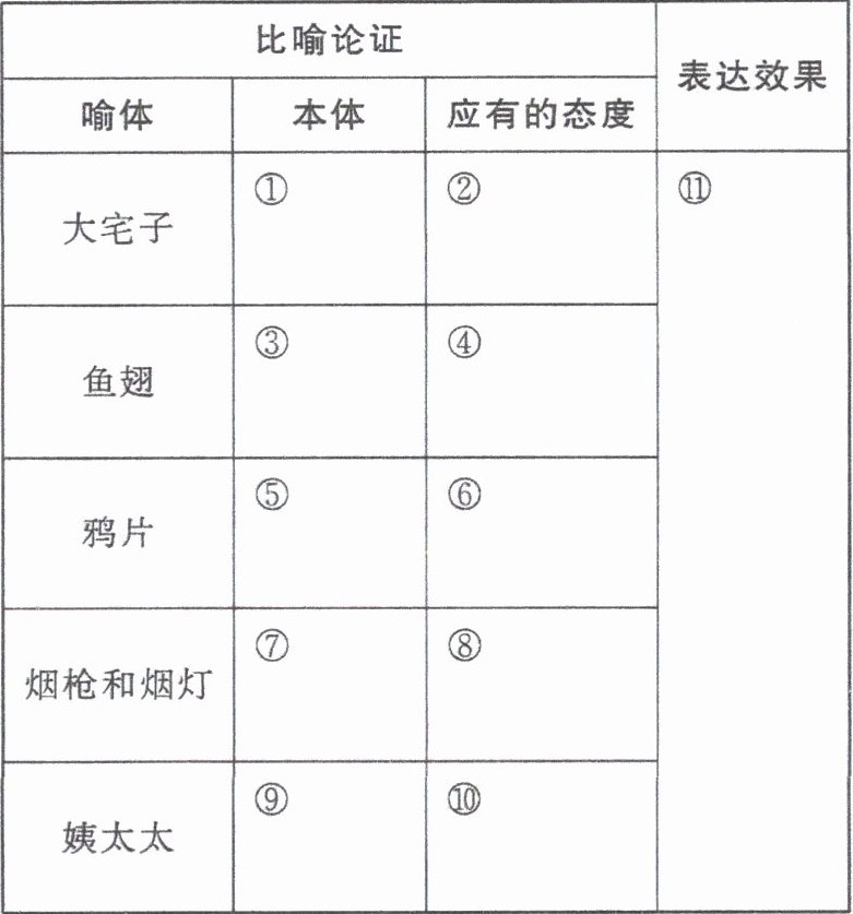 2. 本文在论述“拿来主义”者对待文化遗产的态度时运用了比喻论证的手法。请根据文章内容,填写下表。
