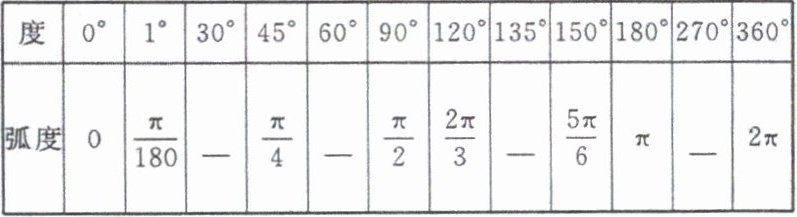 $ \approx 57.30^{\circ} $.(2) 一些特殊角的度数与弧度数的对应关系