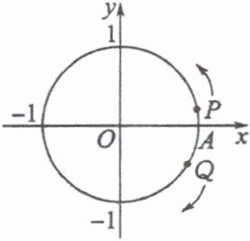 2. 如图,在平面直角坐标系中,动点P,Q从点A(1,0)出发在单位圆上运动,点P按逆时针方向每秒钟转动$\frac{\pi}{12}$rad,点Q按顺时针方向每秒钟转动$\frac{11\pi}{12}$rad,则P,Q两点在第1804次相遇时,点P的坐标是