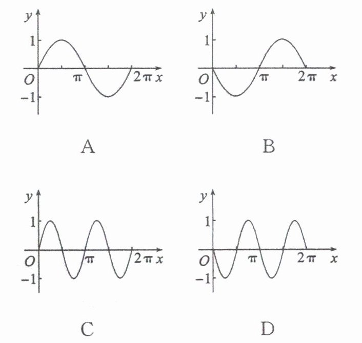 3. 函数 $ y = \sin(-x) $,$ x \in [0, 2\pi] $ 的简图是(