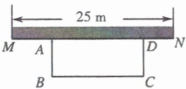 如图, 某中学准备在校园里利用院墙的一段, 用篱笆围成一个矩形花园 $ ABCD $. 已知院墙 $ MN $ 的长为 25 m, 篱笆长为 50 m(篱笆全部用完), 设 $ AB $ 的长为 $ x $ m.