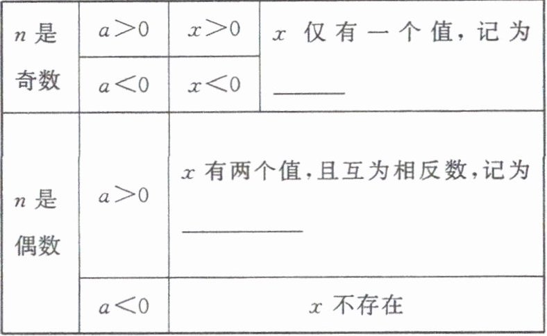 当$n$为偶数时,只有$a\geqslant0$时,$a$才存在$n$次方根$\pm\sqrt[n]{a}$,当$a\lt0$时,$a$不存在$n$次方根(在实数范围内)。