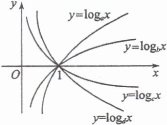 1. 函数$y=\log_{a}x$,$y=\log_{b}x$,$y=\log_{c}x$,$y=\log_{d}x$的图象如图所示,则(