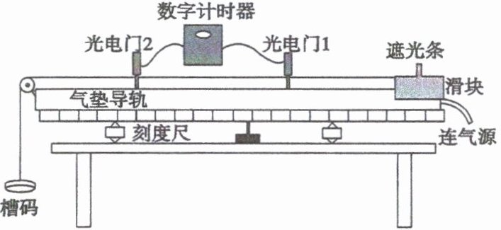 (选填“宽”或“窄”)的挡光板。(2)实验中选用的挡光板宽度是 5 mm,测得挡光板通过光电门的时间是 $ 0.5 × 10^{-3} $ s,则物体通过光电门时的速度大小 $ v = $