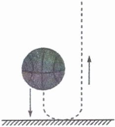 如图所示,篮球以$6\ m/s$的速度竖直向下碰撞地面,然后以$4\ m/s$的速度竖直向上反弹,碰地的时间为$0.2\ s$。
