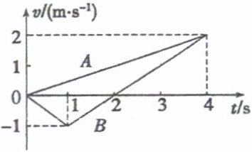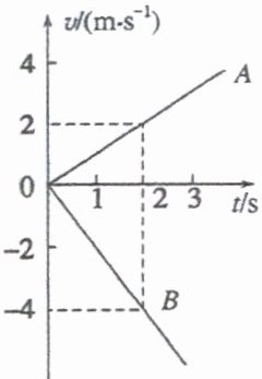 1.AD 解析:由题中图像可知,两者都做加速运动,但两者的运动方向相反,$a_A = 1\mathrm{m/s^2}$,$a_B = -2\mathrm{m/s^2}$,故 A 的加速度小于 B 的加速度,因而选项 A、D 正确。