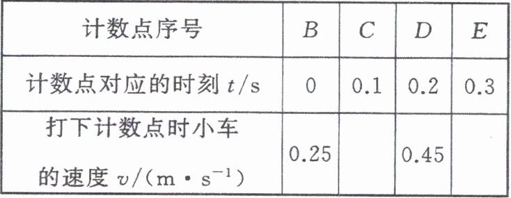(1)由纸带提供的数据求出打下 $ C $、$ E $ 两点时小车的速度,填入下表:
