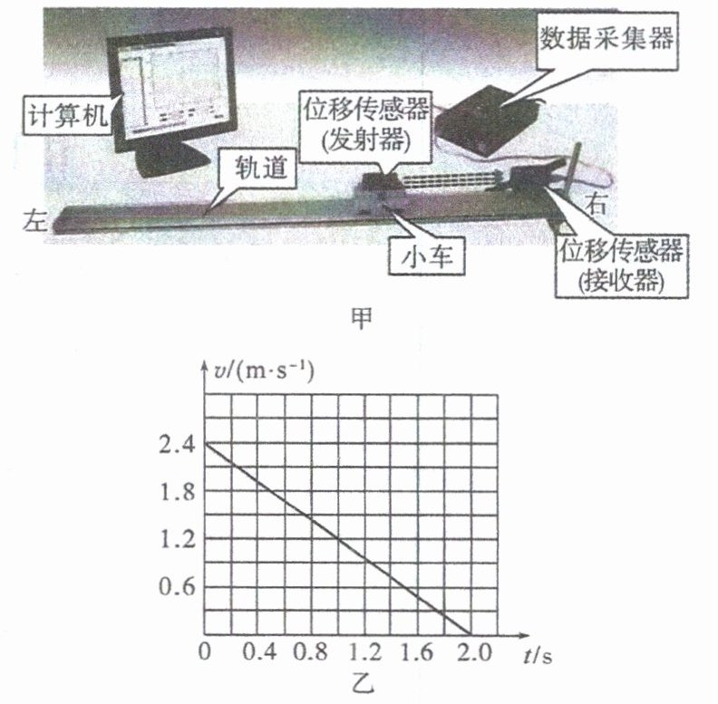 4. 如图甲所示,是运用 DIS 实验的位移传感器测定小车运动规律的实验装置图。