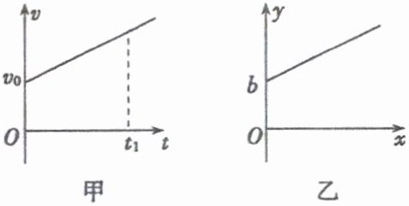 (1)观察图甲和图乙可知,匀变速直线运动的 $ v - t $ 图像与我们在数学里学的一次函数图像类似。类比一次函数的表达式,写出速度与时间的关系式。