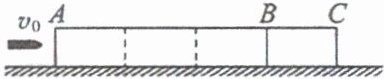 2. (多选)如图所示,水平地面上固定有两块木板 $ AB $、$ BC $,紧挨在一起,木板 $ AB $ 的长度是 $ BC $ 的 $ 3 $ 倍,一颗子弹以初速度 $ v_0 $ 从 $ A $ 端射入木板,并恰能从 $ C $ 端射出,用的时间为 $ t $,子弹在木板中的运动可以看成是匀变速运动,则以下说法正确的是(