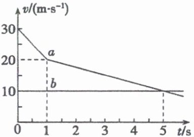 $2.$一辆小汽车以$30\ m/s$的速度匀速行驶在高速公路上,突然发现正前方$30\ m$处有一辆大卡车以$10\ m/s$的速度同方向匀速行驶,小汽车紧急刹车,刹车过程中刹车失灵。如图所示,图线$a$、$b$分别为小汽车和大卡车的$v-t$图像(忽略刹车反应时间)。以下说法正确的是
