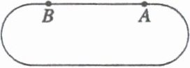 下图是某学校田径运动场$400m$标准跑道的示意图。$100m$赛跑的起跑点在$A$点,终点在$B$点,$400m$赛跑的起跑点和终点都在$A$点。在校运动会中,甲、乙两位同学分别参加了$100m$和$400m$项目的比赛,关于甲、乙两位同学运动的位移大小和路程的说法正确的是(