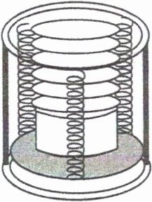 2. (2023·山东卷)餐厅暖盘车的储盘装置示意图如图所示,三根完全相同的弹簧等间距竖直悬挂在水平固定圆环上,下端连接托盘。托盘上叠放若干相同的盘子,取走一个盘子,稳定后余下的正好升高补平。已知单个盘子的质量为 $ 300 \, g $,相邻两盘间距 $ 1.0 \, cm $,重力加速度大小取 $ g = 10 \, m/s^{2} $。弹簧始终在弹性限度内,每根弹簧的劲度系数为(