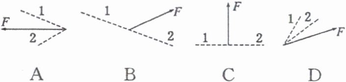A解析:将一个力分解为两个分力时,分力与合力分别构成平行四边形的两个邻边和一条对角线,按这一原则B、C、D中的分力与合力不能构成平行四边形,故无法分解。
