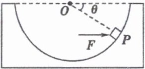 3. 如图所示,光滑半球形容器固定在水平面上,$ O $ 为球心。一质量为 $ m $ 的滑块在水平力 $ F $ 的作用下静止于 $ P $ 点,设滑块所受支持力为 $ N $,$ OP $ 与水平方向的夹角为 $ \theta $。下列关系正确的是(