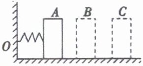3. 如图所示,弹簧一端系在墙上 $ O $ 点,另一端自由伸长到 $ B $ 点,一小物体压着弹簧(与弹簧未连接),将弹簧压缩到 $ A $ 点,然后释放,小物体能运动到 $ C $ 点静止,小物体与水平地面间的动摩擦因数恒定。下列说法正确的是(