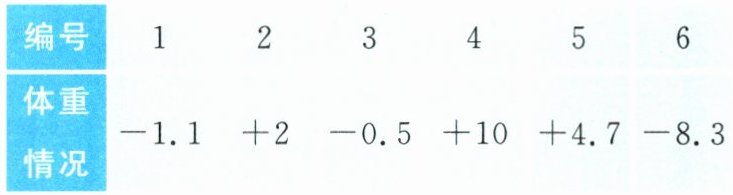 【实践调查】下表是调查的七年级某小组 6 位同学的体重情况, 其中超出标准体重的千克数记为正数, 少于标准体重的千克数记为负数.
