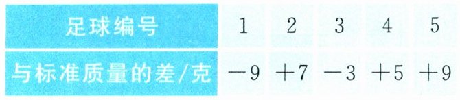 7. 检查 $ 5 $ 个足球的质量,把超过标准质量的克数记为正数,不足标准质量的克数记为负数,检查的结果如下表: