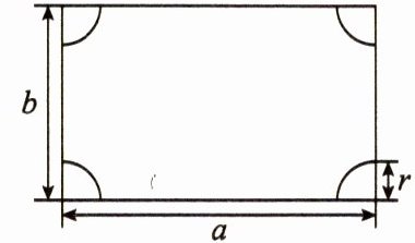 7. 如图,某长方形广场四角均设计一块半径为$r$的四分之一圆形的花坛,广场长为$a$,宽为$b$,则广场空地的面积为(