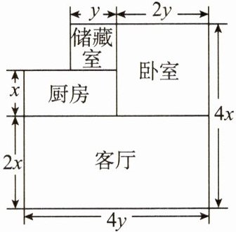 (2)客厅和卧室的墙壁面积为3[2(2x+4y)+2(4x−2x+2y)]=3(4x+8y+8x−4x+4y)=12x+24y+12x+12y=(24x+36y)m².答:需要(24x+36y)m²的壁纸.