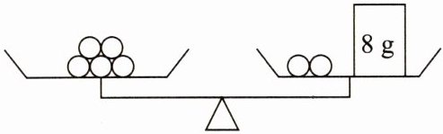 8. 如图,天平左边放 5 个小球,右边放 8 g 的砝码和 2 个小球,天平恰好平衡. 如果设 1 个小球的质量为 $ a $ g,请你列出一个含有未知数 $ a $ 的方程: