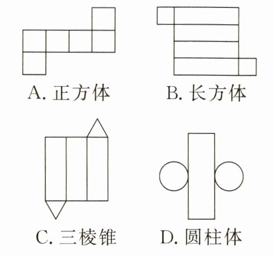 - 练习4 下面的平面展开图与图下方的立体图形名称不相符的是(