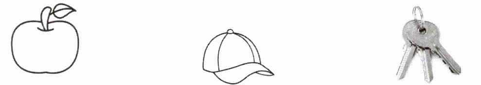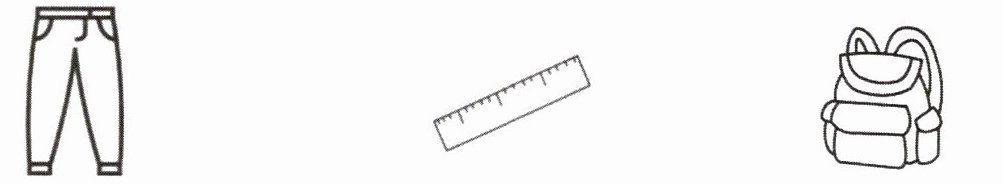 1. apple 2. cap 3. keys 4. trousers 5. ruler 6. schoolbag