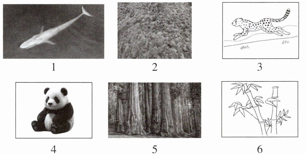 Task 1:1. whale 2. Ginkgo 3. cheetah 4. Pandas 5. redwood 6. Bamboo