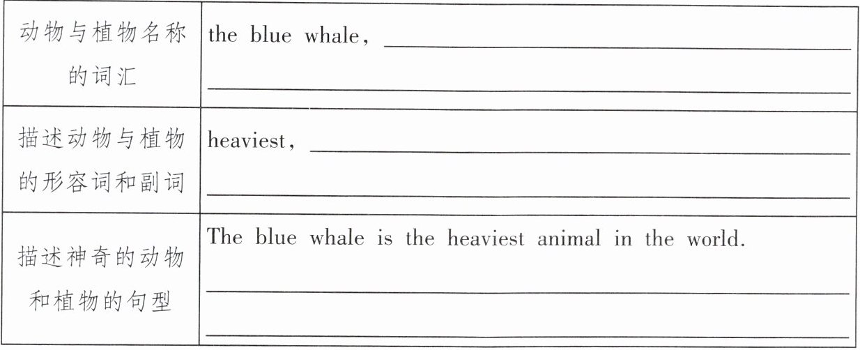2. 描述动物与植物的形容词和副词:tallest, fastest(答案不唯一)