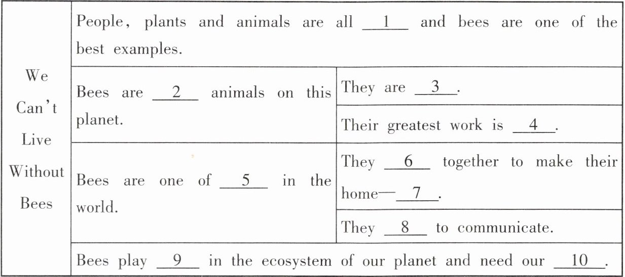 | | Bees are one of 5 in the world. | They 6 together to make their home—7. |