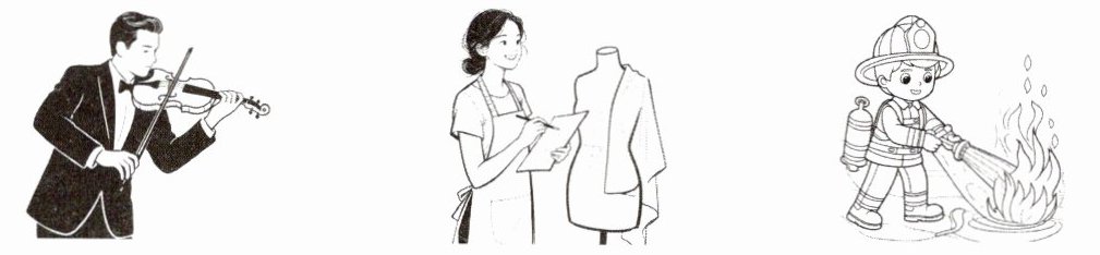 Task 1:1. musician 2. fashion designer 3. firefighter 4. teacher 5. athlete 6. engineer