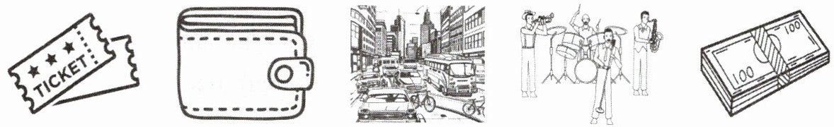 Task 1:1. ticket 2. wallet 3. traffic 4. band 5. money