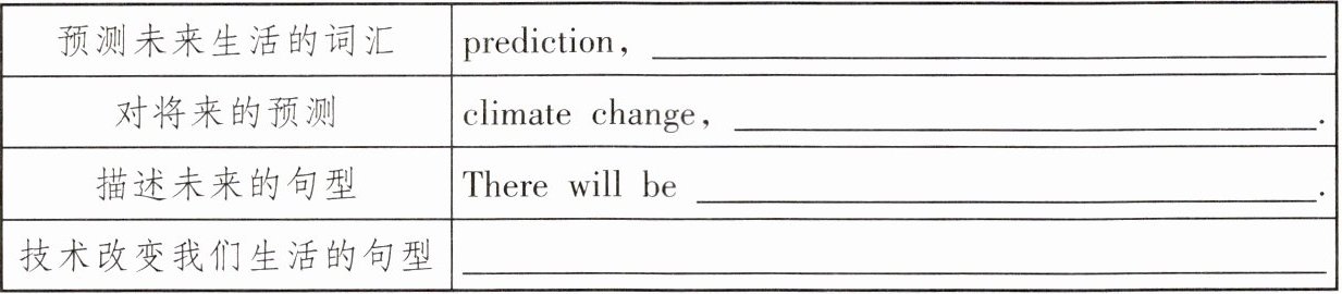 从左到右依次为:future;more pollution;more people;Technology will change our life in many ways