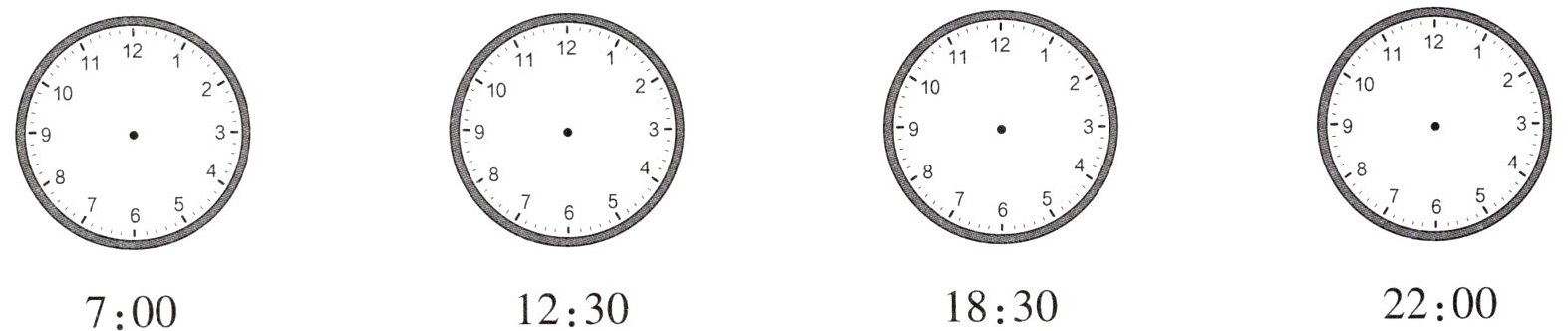 二、画一画。(在钟面上画出相应的时间)