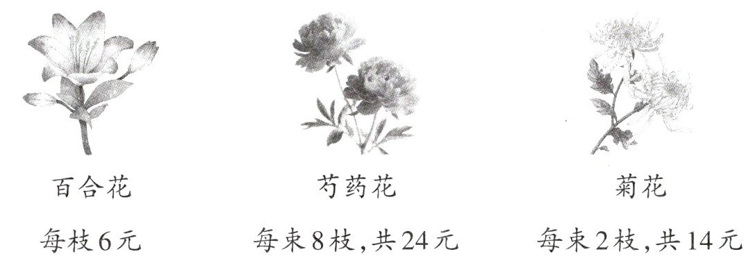 一、买1枝芍药花和1枝百合花,应付多少元?