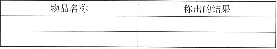 四、找一些身边的物体,选择合适的秤称一称,并记录得到的结果。