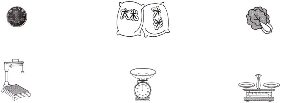 1角硬币连天平,两袋大米连台秤,一棵白菜连电子秤。