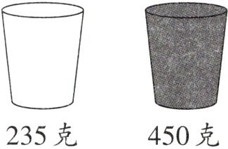 三、如图,有两个相同的杯子,其中一杯装满了果汁。你能算出杯中的果汁是多少克吗?