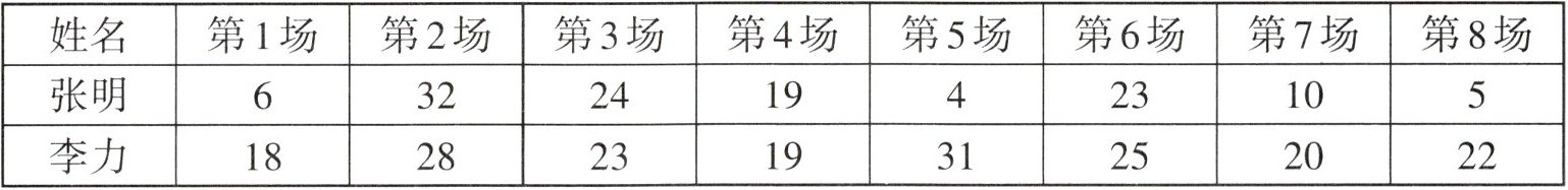 二、某小学两名篮球运动员在8场比赛中个人得分情况如下。(单位:分)