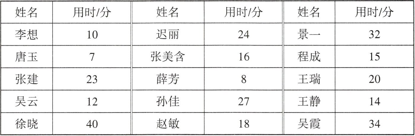一、实验小学随机调查的部分学生上学途中的用时情况记录如下: