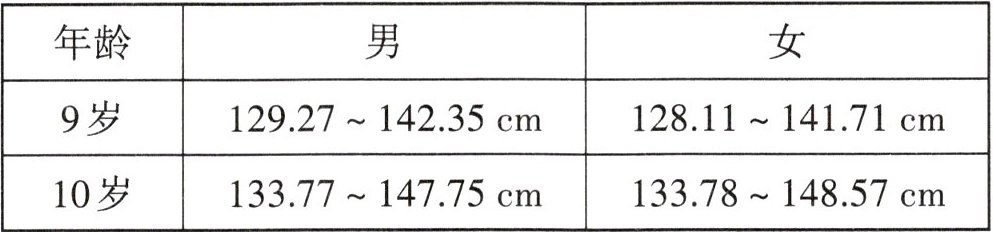 1. 我国正常儿童9~10岁的身高标准如下表: