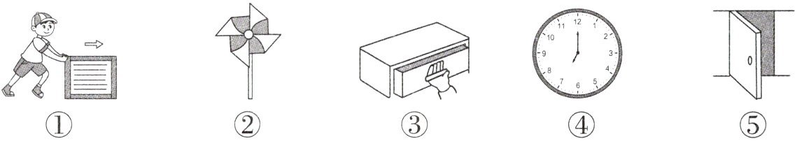 一、下面的运动,哪些可以看作平移?哪些可以看作旋转?(把相应的序号填在括号里)