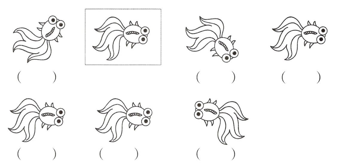 二、哪些金鱼通过平移能与方框中的金鱼重合?(在括号里画“√”)