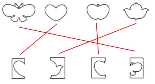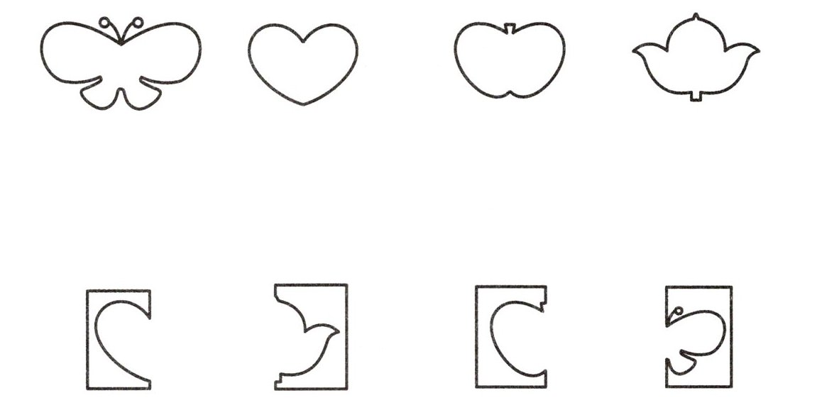 二、下面的图案各是从哪张对折的纸上剪下来的?连一连。