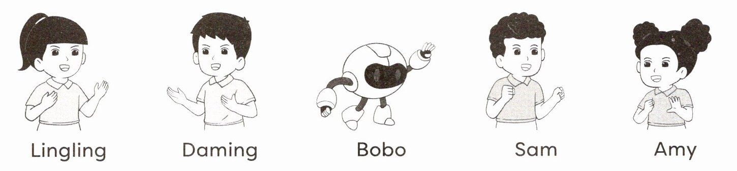(新学期的“英语欢乐派对”上,小伙伴们正在热情地介绍自己。请听录音,根据所听到的内容,用①②③④⑤给下列图片排序。)