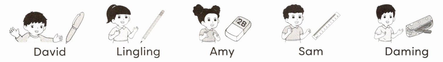Ⅱ. Listen and judge. (学校失物招领处正在寻找文具的主人。请听录音,判断下列文具是否属于图中的小朋友。属于的画“√”,不属于的画“×”。)
