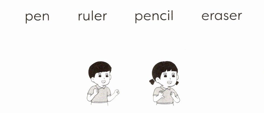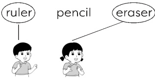 Task 1. Circle and match. (圈出 Lingling 发现的文具,并将文具与相应的人物连线。)