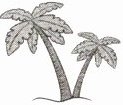 . Blue sky(天空) and blue sea (大海). Green coconut trees